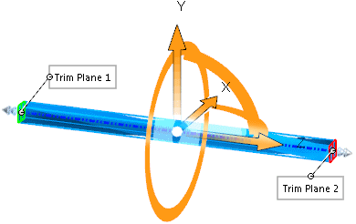 伸展:沿三重軸的Z軸拉伸實體和曲面實體。 指定一距離或使用鼠標(biāo)左鍵拖動剪裁基準(zhǔn)面的邊線。