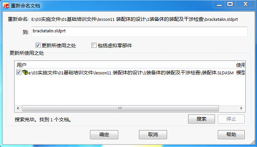 SOLIDWORKS重命名會自動更新使用之處;這樣打開裝配體后就不會出現零部件丟失。